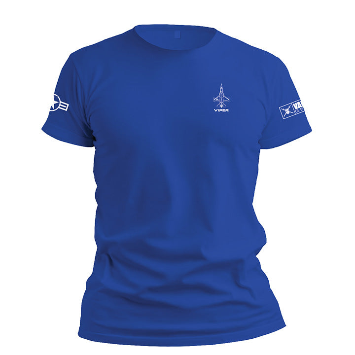 The F-16 T-shirt embodies the General Dynamics F-16 Fighting Falcon, which filled the gap between an air superiority fighter and a ground attack platform like the F-18 Hornet. It is primarily flown by the U.S. Air Force and remains the jet for the Thunderbirds air team. Able to carry a multitude of weapons, it has been used in every theatre of operations that called for a light, fast, attack plane.