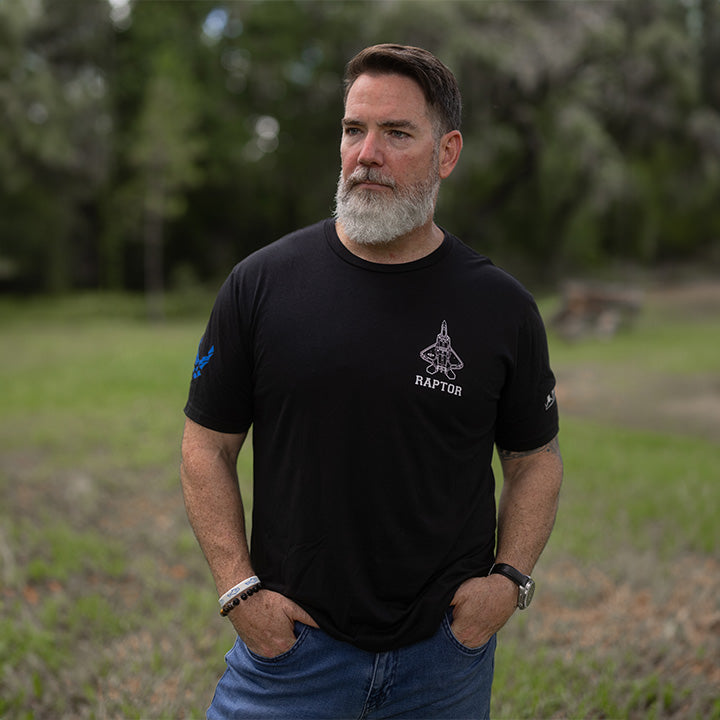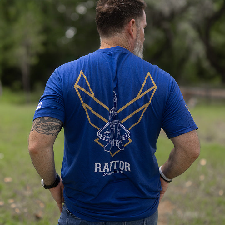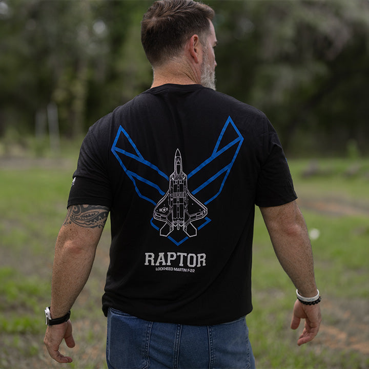 The F-22 Raptor T-shirt embodies Lockheed Martin's F-22 Raptor which is the air superiority fighter of the century. Able to cruise at supersonic speeds with superior technological advancements like multiple target acquisition, this aircraft's ability is unmatched.