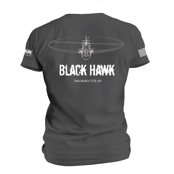 The UH-60 Black Hawk T-shirt embodies the Sikorsky UH-60 Blackhawk helicopter, which has been the workhorse of the US military since 1979 when it was first accepted. It was picked as the successor to the Bell UH-1 Iroquois and can be found in many different branches of the US military in many variations.