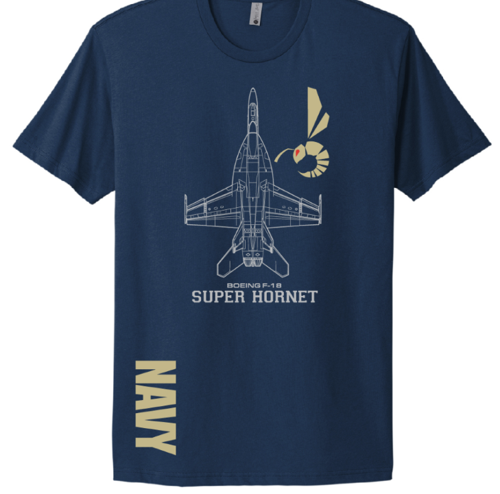 This F-18 T-shirt embodies the Boeing F/A-18 Super Hornet.