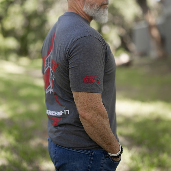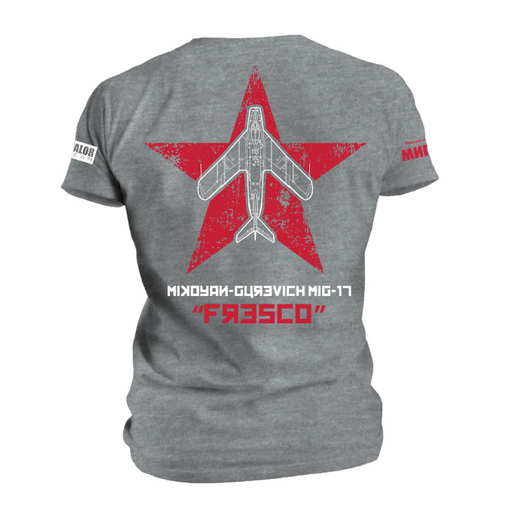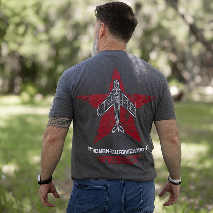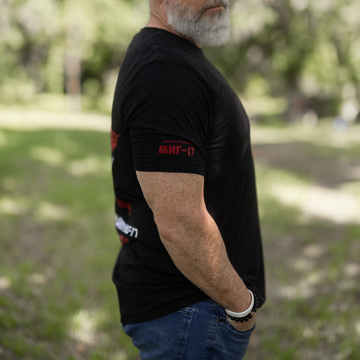 Many dogfights over North Vietnam were fought in the Mig-17. Aces on both sides of the conflict ensured that the Mig-17, love it or hate it, went down in history as a fighter to be reckoned with. Own a part of history and order one of our veteran-drawn Mig-17 T-shirts, NATO code name "Fresco".