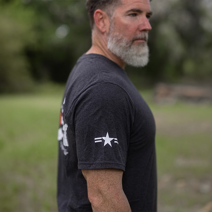 The artwork on this shirt is created by a pilot who is a Commander in the U.S. Navy.
