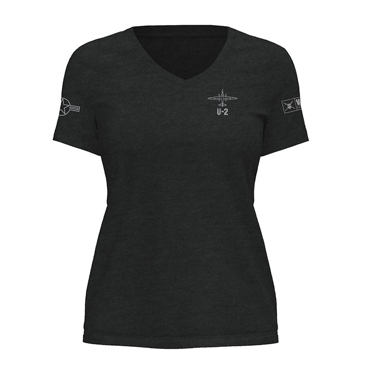 The U-2 Dragon Lady T-shirt is an icon of the Cold War that is still flying today. This spy plane, developed by Lockheed and nicknamed the "Dragon Lady," is a unique aircraft that operates at high altitudes in the Earth's atmosphere, on the edge of space.