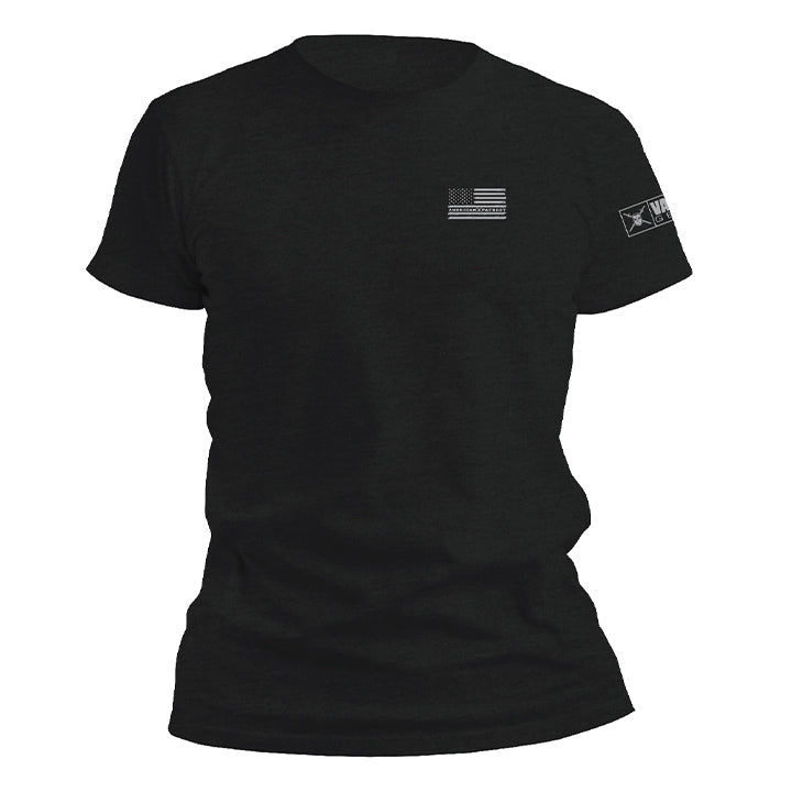 This roundel t-shirt has a weathered look to simulate use and was used on all U.S. aircraft up till recent times. The roundel has changed multiple times since WW2 with the most recent version being the stealth roundel which has no colors and is just an outline.