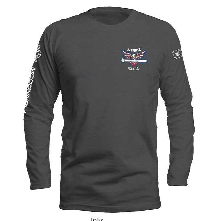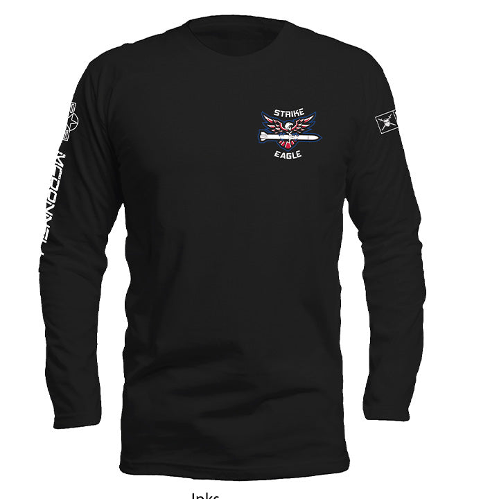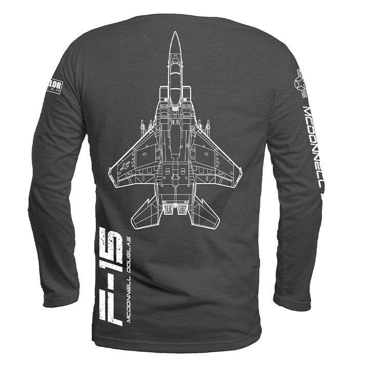 This F-15 Long Sleeve T-shirt represents one of the greatest fighter planes of all time. Introduced by McDonnell Douglas to the United States Air Force in 1972, it was the top air superiority fighter in the world until the advent of the F-22 Raptor. Nicknamed the Eagle or Strike Eagle depending on the version, it remains in service today as one of the only fighters to have never been shot down.