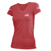 Our American Flag T-shirt is how you show love for your country!. The sleeve has the Valor eagle emblazoned on it. Wear with this Ladies American Patriot V-neck shirt with honor as you represent your love for freedom as an American. You are an American Patriot, Valor is in You- Set it Free!