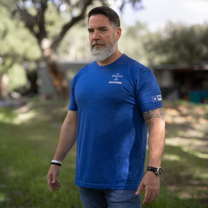 This is our updated design of the P-51 Mustang T-shirt. The air superiority fighter of WW2 and arguably the best piston engine fighter of all time, the North American P-51 Mustang was deadly, fast, had great endurance and was highly prized by all who flew it.