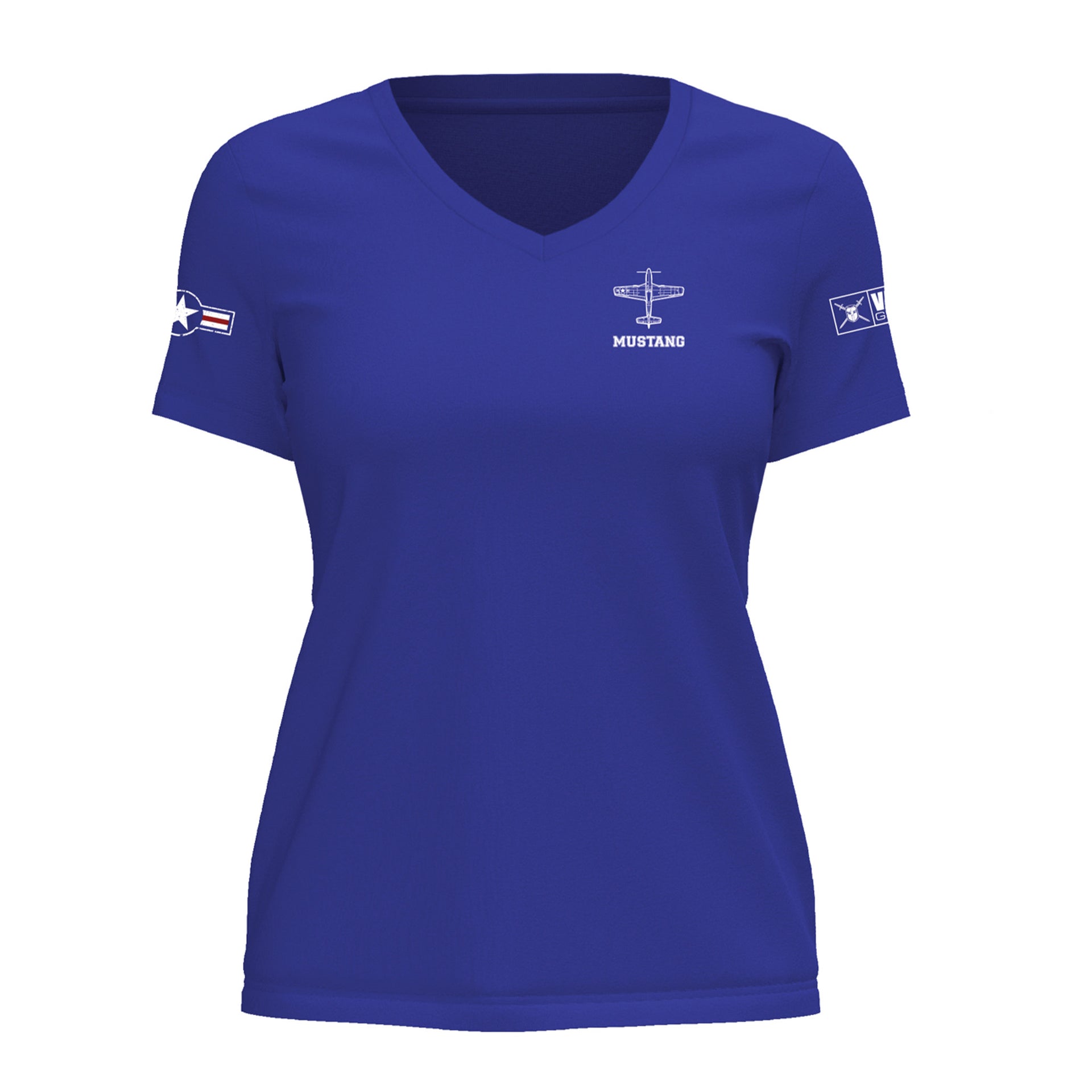 This North American P-51D model t-shirt of the famous Mustang fighter of WW2 has the bubble canopy and was probably the most famous version of North American's iconic warbird.