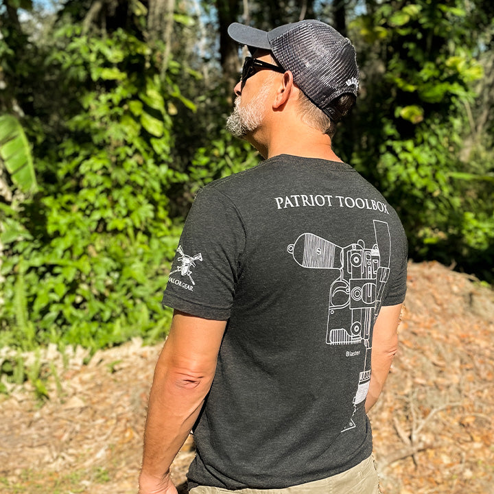 This DL-44 Blaster T-shirt embodies the iconic pistol used in famous space wars movies. It got its design from the Broomhandle Mauser C96, used by the German military from 1896 to 1937. It seems fitting that the United States Space Force would have it in their inventory.